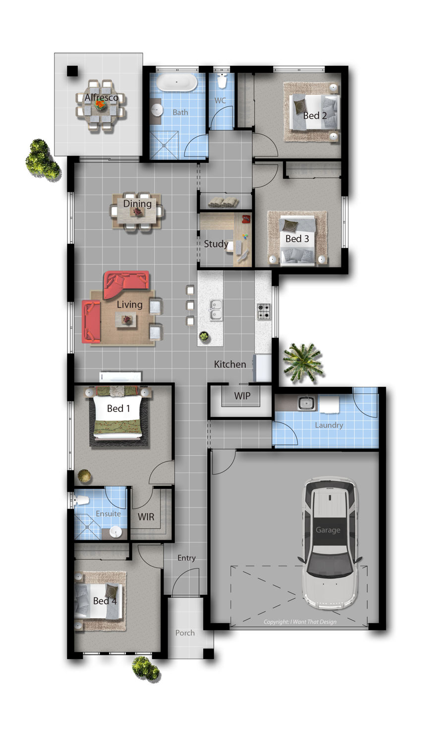 – Walk in pantry, study and enclosed laundry area